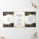 Black Gold Abstract Ink QR Code Wedding Tri-Fold Invitation