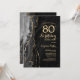 Black and gold agate 80th birthday party invitation. Elegant modern design featuring watercolor agate marble geode background, faux glitter gold and typography script font. Trendy invite card perfect for a stylish women's bday celebration. Printed Zazzle invitations or instant download digital printable template.
