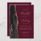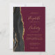 Black Gold Agate Burgundy Photo QR Code Wedding Invitation