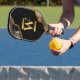 Black & Gold Agate Geode Glitter Monogram Pickleball Paddle