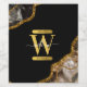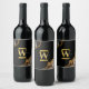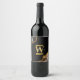 Black & Gold Agate Geode Glitter Monogram Wine Label