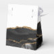This elegant modern favour box features a black watercolor agate design trimmed with gold faux glitter. The words "First Holy Communion" appear in charcoal grey handwriting script on a white background. Personalise it with your child's name, along with the date below.