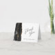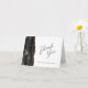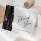 The left-hand edge of this elegant flat wedding thank-you card features a black watercolor agate design trimmed with gold faux glitter. The text is in charcoal grey script and sans serif fonts on a white background.