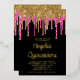 Black Gold and Deep Pink Glitter Drips Quinceañera