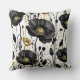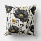 Black, gold and white poppies cushion