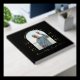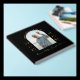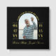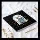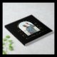 Black square photo funeral guestbook with your loved one's photos in an arch shape with Forever in our hearts in curved text above. On each side, the date of your loved one's birth and the date of their passing with elegant dividers framing these important dates. Your loved one's name in an elegant script beneath, printed in gold foil on a black background. Black and gold foil square memorial guestbook with an elegant design printed with real gold foil to honour your beloved family member or loved one who has passed away.