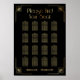 Using a sleek, retro font, I've created a graphic that reads "Please Find Your Seat". Framing embellishments with an Art Deco vibe were added to each corner. All these graphics were embellished with faux gold treatments. Complementary fonts and colours were used for the placeholder fields you'll edit as you personalise this design. All layers were added separately and left unlocked to give you considerable design control. Feel free to change the background colour to anything you prefer. This setup has 16 tables laid out in four rows of four. Alternate versions of the header text graphics have been included but "turned off". You can see these by clicking the eyeball beside each layer, should you be interested in any changes in that area // 122 //
