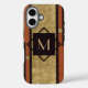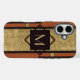 A bold, black and gold geometric design on a rich tan leather background, coupled with a minimal monogram initial, combine to create a sophisticated and unique personalised iPhone case. These vintage vibes are sure to please, and this phone case will make the perfect gift for Father's Day, birthdays, graduation, groomsmen, or a wedding anniversary.