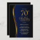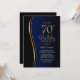 Invite your friends and loved ones with this modern black, gold and blue 70th birthday party invitation. The customisable text area in this invitation template allows you to effortlessly include all the necessary details for your special birthday celebration, including the date, time, venue, and RSVP information. A variety of paper types and corner styles are available for your unique invitations, along with the option to download if you prefer a digital format.