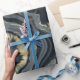 A beautiful graphic design of black; gold; blue and white and pale grey streaks that resemble agate stone / marble. This elegant and luxurious looking gift wrap is ideal for classy wedding; anniversary and birthday party presents.