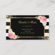 Elegant black and white striped floral wedding registry insert card featuring gold confetti and watercolor blush pink, ivory and peach flowers and gilded greenery. Matching items available.