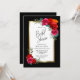 An elegant black and gold-bordered red floral bridal shower invitation.