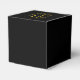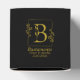 Favour box features modern gold hand-drawn botanical frame with botanical letter B in centre on black background. Personalise with couple's name and/or date or other message