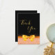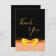 An elegant and glamourous birthday thank you card. A chic black background, faux gold ribbon and bow. On front a hand lettered style script and the text: Thank You. Brown letters.