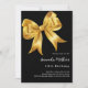 A classic black background, decorated with a large golden bow. Personalise and add a name and party details.