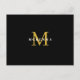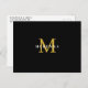 Elegant postcard featuring personalised monogram with name in gold and white on a black background. The back features a return address.