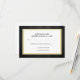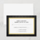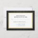 This RSVP features a professional black and grey vertical stripe background with a white box with a gold border in the centre. Customisable text allows you to add your response information.