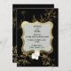 This elegant Halloween invitation has gold decorations on black background. The frame has an elegant geometric shape enclosing the text that can be personalised for your Halloween party or Dia de los Muertos party. At the bottom of the October themed part invitation is a watercolor candles. The back side has matching gold floral.