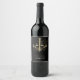 This design features elegant black background with a vintage golden colour chandelier. The damask gold chandelier reflects its shadow contrasting against the black. The combination of the black and gold colours creates a sophisticated, trendy and chic style. Elegant wedding wine label design with modern elements. The simple setup of the typography gives it a distinct style. Matching wedding invitations and other stationery items are also available.