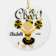 Black & Gold Cheer Cute Blonde Cheerleader Ornament. Easy to personalise with your name & date. Visit our shop to view this ornament in a large variety of school colours & hair colours