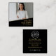 The front features a deep black background with gold and white fonts, showcasing your photo, company logo, name, and title or business name in a clean, polished layout. The back continues the black aesthetic, displaying your contact information and social media icons in a refined and balanced arrangement.