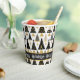 If you are wondering what colour combinations to pick for your Christmas decor and gift wrap supplies this year, I've created collections of coordinating patterns to make life just a bit easier. This Christmas paper cup features a modern graphic design of tiny Christmas trees in a geometric-style pattern of black and gold with a template to add your text. Search ID1009 to see other products and patterns in this colour scheme.