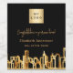 A black background, with a faux gold city skyline as decor. Personalise and add your business logo and a text on front. Golden letters