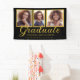 Black and gold graduation Class of 2024 photo banner with an elegant script font overlay and a 3-photo collage. Contact me for assistance with your customisations or to request additional matching or coordinating Zazzle products for your event(s).