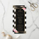 Elegant black and white striped floral wedding program featuring watercolor blush pink, ivory and peach flowers and gilded greenery. Matching items available.