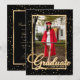 Elegant black and gold photo graduation party invitation featuring a modern script font and gold confetti.
