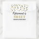 Retirement is sweet favour tag sticker with black and gold confetti pattern.