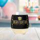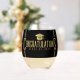 Black and gold congratulations wine glass for a graduation party. Design features a triple square border, graduation cap, and customisable graduation year text. Personalise it with your class of year and name. Fitting for any type of graduation: high school, college / university, nursing, etc.