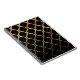 Black, gold, cool, unique, trendy, retro abstract illustration pattern art made with curvy gold coloured lines forming retro geometric shapes. Luxurious, decorative, vintage graphic design artwork