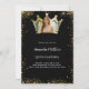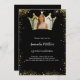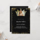 A black background, decorated with faux gold glitter. Personalise and add a name and party details. Add a photo to the crown shaped frame.