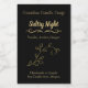 Chic black product labels ready for you to personalize with your own information. Elegant black with gold tone accent flourish, on the top and a gold tone leaf vine, in the middle of the label. Personalize the golden yellow text for your products.
