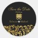 Elegant black & Gold Damask, Chinese Double Happiness "Save the date" wedding stickers.