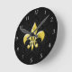 Black/Gold Damask Fleur de Lis Round Clock