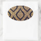 Black & Gold Damask Traditional Contemporary Print Oval Sticker