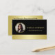 An elegant black and gold design featuring a golden circle where you can add your photo or logo. Perfect for business cards and other products to beautifully showcase your brand.