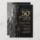 Black and gold agate surprise 50th anniversary celebration invitation. Elegant modern design featuring watercolor agate marble geode background, faux glitter gold and typography script font. Stylish invite card perfect for a classy wedding anniversary party. Printed Zazzle invitations or instant download digital printable template.