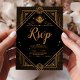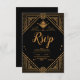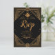 Black Gold Elegant Geometric Art Deco Wedding RSVP Card