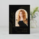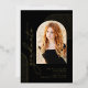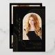 Black and Foil Gold elegant script photo graduation announcement. All of the text as well as the lined arches are printed in real foil gold on the front.
