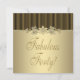 Black gold stripes elegant black womans 40 40th fortieth birthday party invitation. Add your details to the front and back by simply choosing the orange "Customise it!" button to begin adding your event details, font style, font size & colour, and wording. Please note - all of the invitation designs you will find on Zazzle are printed graphics on flat paper stock with no actual jewels, bows, raised, embossed, or added parts or pieces.