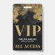 All Access Elegant Black Gold VIP Badge. A black and white design with gold accents (not actual shimmer or foil, just colour). Great for fashion shows, concerts, large special events like conferences, speakers, or even a birthday party like a sweet 16 or a New Year's Eve celebration. It has a simple modern, yet elegant look. At the bottom, a bold serif font is mixed with simple typography to display VIP, the event name, date, and "All Access Pass." All text and colours on this badge can be customised to fit your event.
