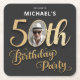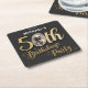 Black Gold Faux Foil Custom Photo 50th Birthday Square Paper Coaster