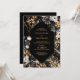 This wedding invitation features an elegant cream and black floral spray with gold leaves over a black and gold marble background. The customisable typography lets you personalise the invitation with your names, wedding date, and all other essential information. Designed for the budget-savvy couple, the reception venue location, RSVP response request, accommodation details, and any other information your guests may require can be included on the reverse side of this invitation, saving money on extra stationery. Celebrate your love story like never before with this wedding invitation. A variety of paper types and corner styles are available for your unique invitations, along with the option to download.