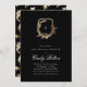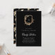 black & gold floral monogram crest bridal shower invitation