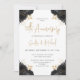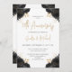 This elegant 50th wedding anniversary party invitation features black roses with faux gold foil foliage in four corners on a white background. The words "50th Anniversary" and the couple's names appear in trendy gold-colored modern handwriting script. Add the details in charcoal gray sans serif font.