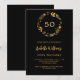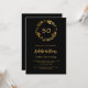 Black gold floral wreath birthday invitation