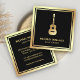Black Gold Foil Guitar Music Teacher Guitarist Square Business Card